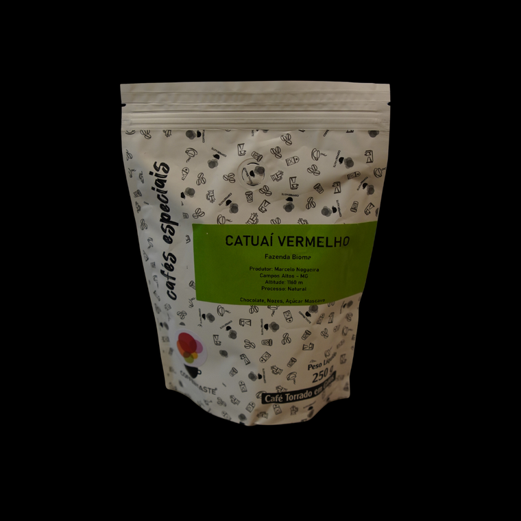 Café Especial Catuai Vermelho - Fazenda Bioma Local: Campos Altos, MG Altitude: 1160m Processo: Natural Notas: Chocolate, Nozes e Açúcar Mascavo